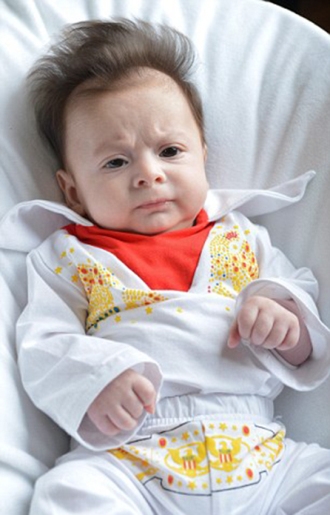 一嬰兒出生自帶捲發似貓王髮型驚呆父母