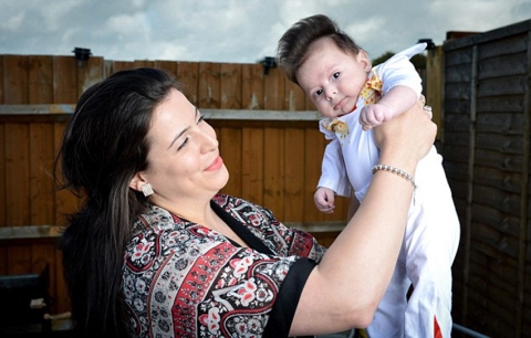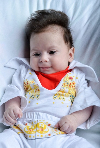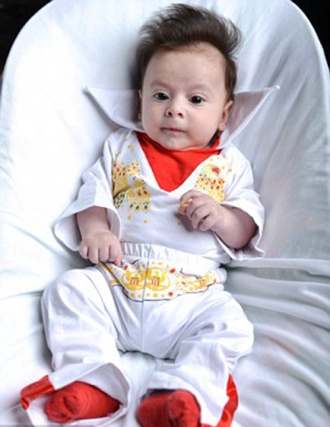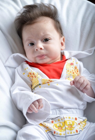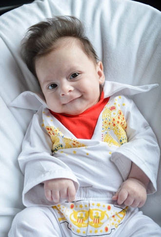 10個月大的嬰兒George出生就驚人地自帶捲發,並形成一個波型,看起來像貓王的髮型一樣。